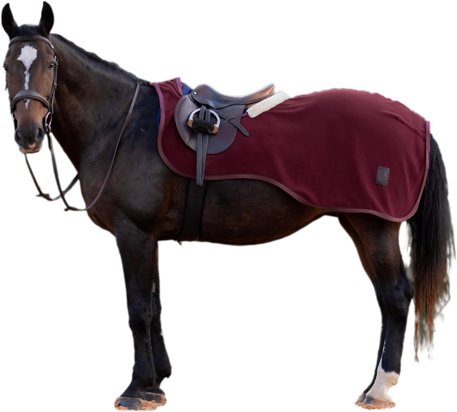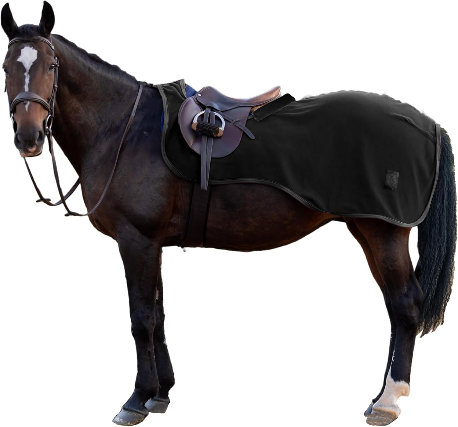 Premium fleece and UltraFleece trim for a stylish quarter sheet. The Equinavia Koselig Fleece Quarter Sheet offers a contoured fit with ultra high-pile anti-pill fleece, ensuring it stays securely in place around the hindquarters while riding. It features a matching leather-look piping to complement the Koselig cooler and an UltraFleece bumper behind the cantle to block drafts and further stabilize the sheet. Versatile for use under the saddle flap or over the rider’s legs, it attaches easily with a heavy-duty hook and loop closure at the front of the saddle pommel.