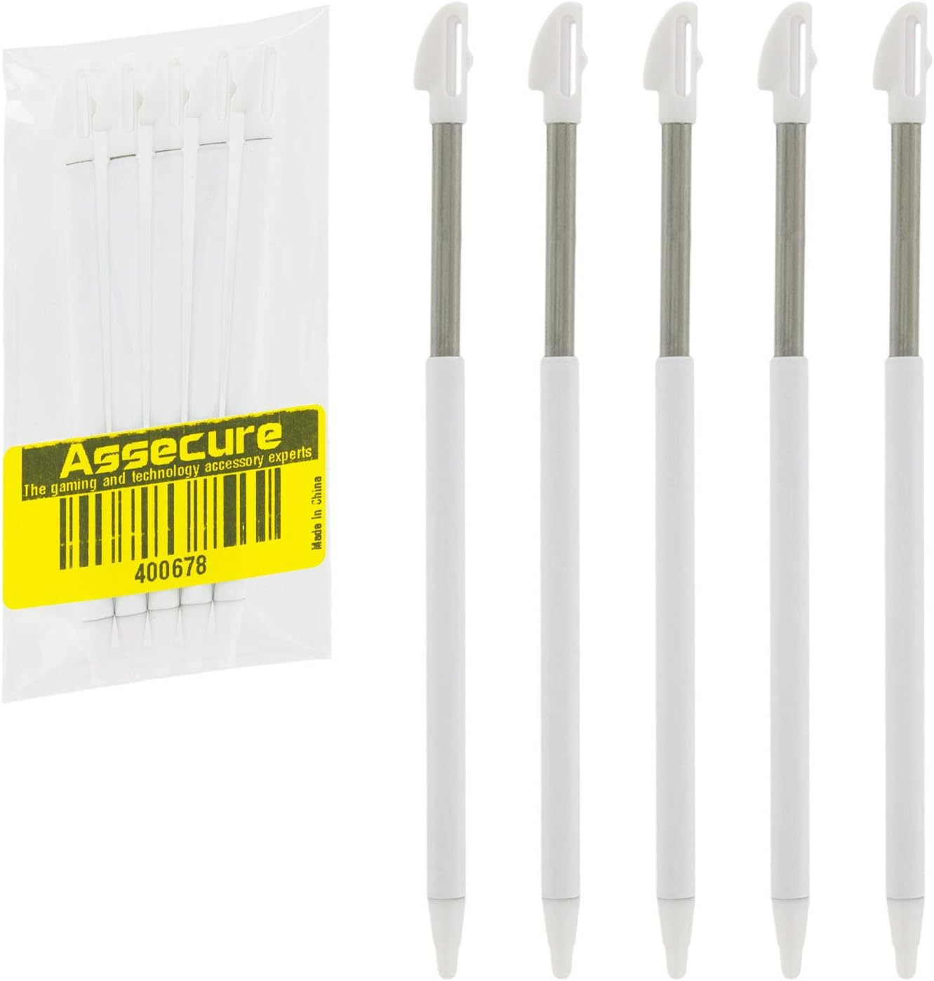 The Assecure 3DS XL White metal Stylus Pack includes 5 replacement styluses, which allows for greater accuracy when compared to using a finger on the touch screen. The Stylus Pack contains 5 extending Styluses in an attractive all black finish, they easily slot inside the storage slot on the 3DS XL console just like the original.