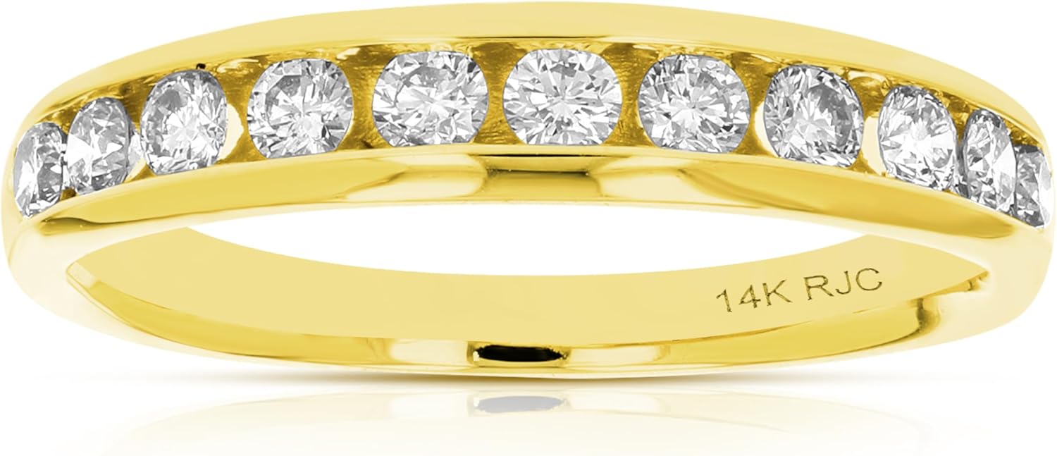 Lovely, elegant 1/4 cttw to 1 cttw comfort fit diamond wedding band in 14k white or yellow gold. The sparkling diamonds are natural diamonds set in a channel setting. This ring is available in multiple sizes. Gift box is included with this bridal ring.