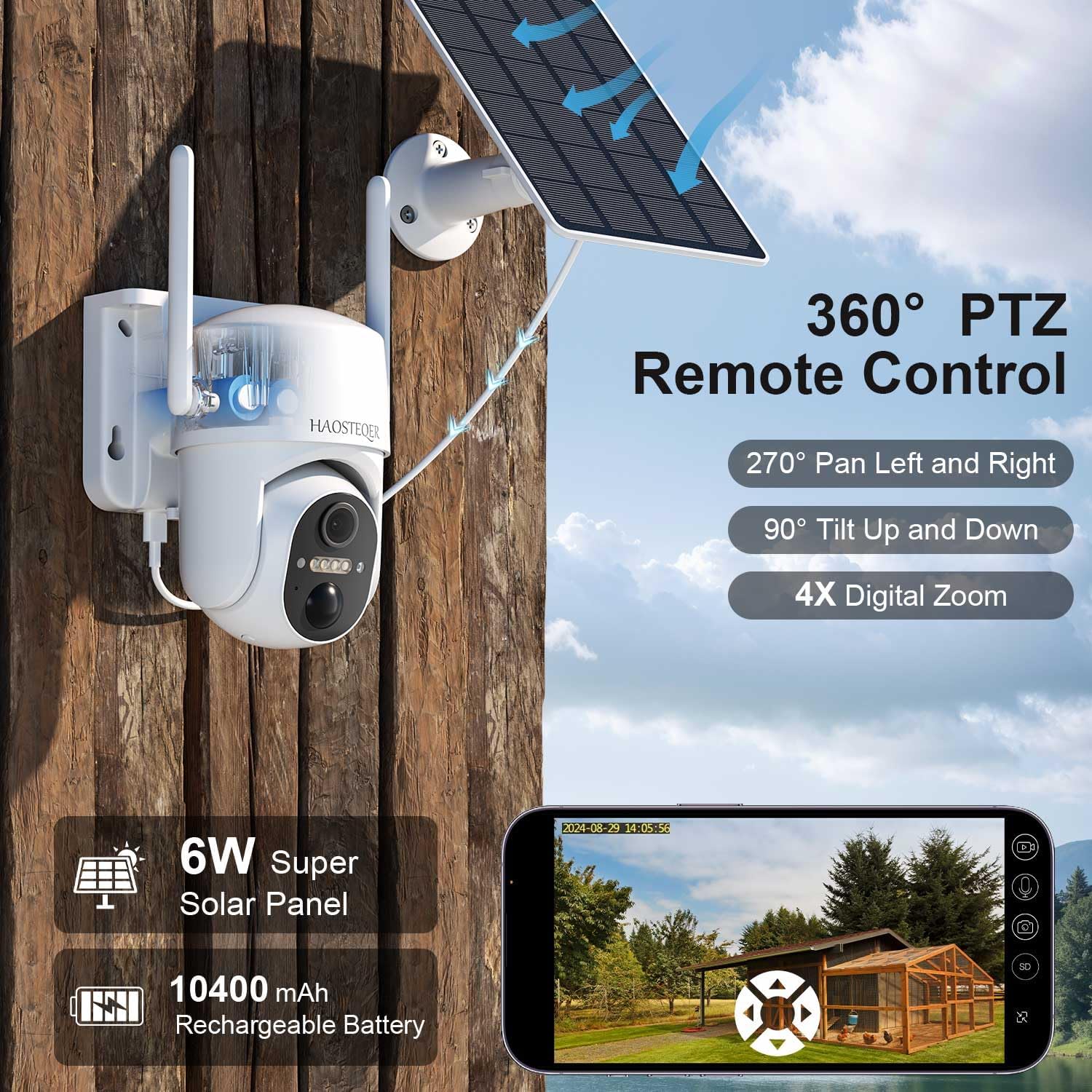 | Other Special Features of the Product | 100% Wireless, 365 Days Non-stop Power, 2-Way Audio, HD Resolution, Night Vision, PTZ Technology |