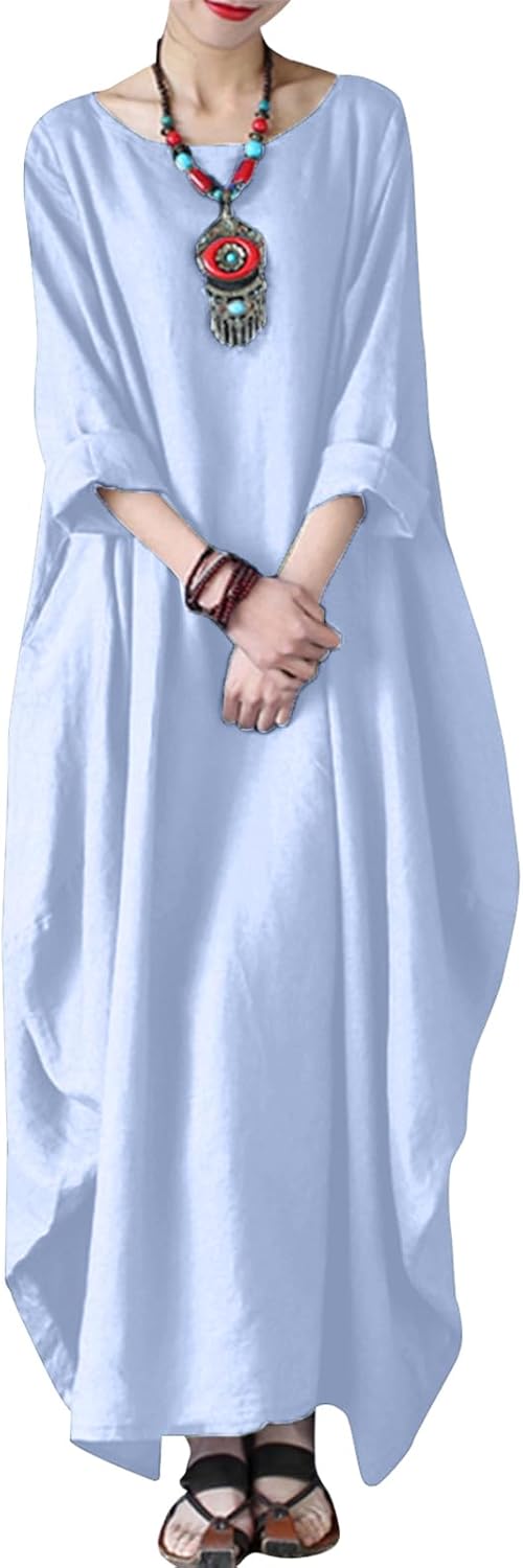 Material: 100%Cotton Type: Dress Color: Blue, Red, Green, Black Package include: 1 Dress Features: Women Oversized 3/4 Sleeve Baggy Pockets Crewneck Maxi Long Dress. Tips: * Due to various types of computers and monitors, the actual color of the item may be little different from the picture. * If you aren't satisfied with the item,please contact us before you leave the feedback,thank you for your understanding. * Manual measurement may exist 2-3cm difference.Please check and compare the size carefully before buying! (1cm=0.39inch)