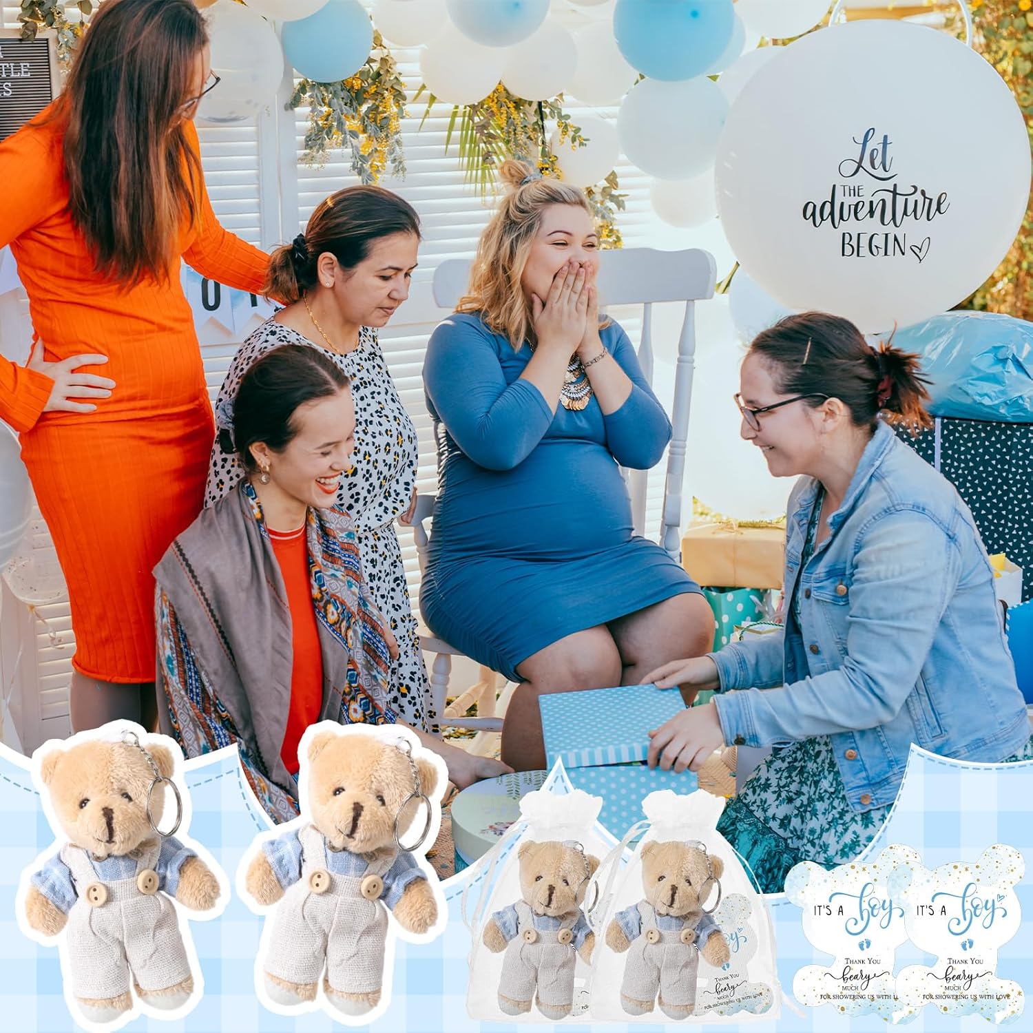 Features: Practical gifts: You can send these baby shower return gifts for guests to your friends, neighbors, family members and coworkers, which can show your warm heart and kindness, the person who receives these gifts will be very happy. Convenient to use: Bear themed baby shower favors make the ideal gift for friends and family. The bear is cute, soft and beautiful, well suited for crafts or party decorations, you can hang the bear on your backpack. Specifications: Material: Bear: plush, PP cottonThank you cards: cardstockColor: as pictures showSize: Plush bear keychains: 3.94 inches/ 10 cm in heightPackage includes: 25 x Plush bear25 x Bear shaped thank you cards25 x Organza bagsNotes: Manual measurement, please allow slight errors on size. The color may exist slight difference due to different screen displays.