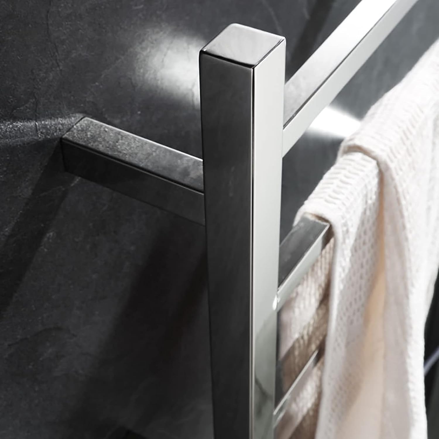 Material: 304 Stainless Steel Bar Configuration: 4 Straight Bars Style: Modern Dimensions: 480MM (width) * 500MM (height) * 125MM (away from the wall) Rated Voltage: AC 110V-240V/50Hz Heating Time: 10-15 min Temperature: 50±5℃ Waterproof Rating: IP56 With Built-in Timer: NO Power Cord Length: 1.5 Meters Installation Method: Wall-Mounted Wiring Options: Plug-in Finish Options: Brushed Gold,Chrome Packing List: 1 x Heated Towel Warmer,1 x User Manual