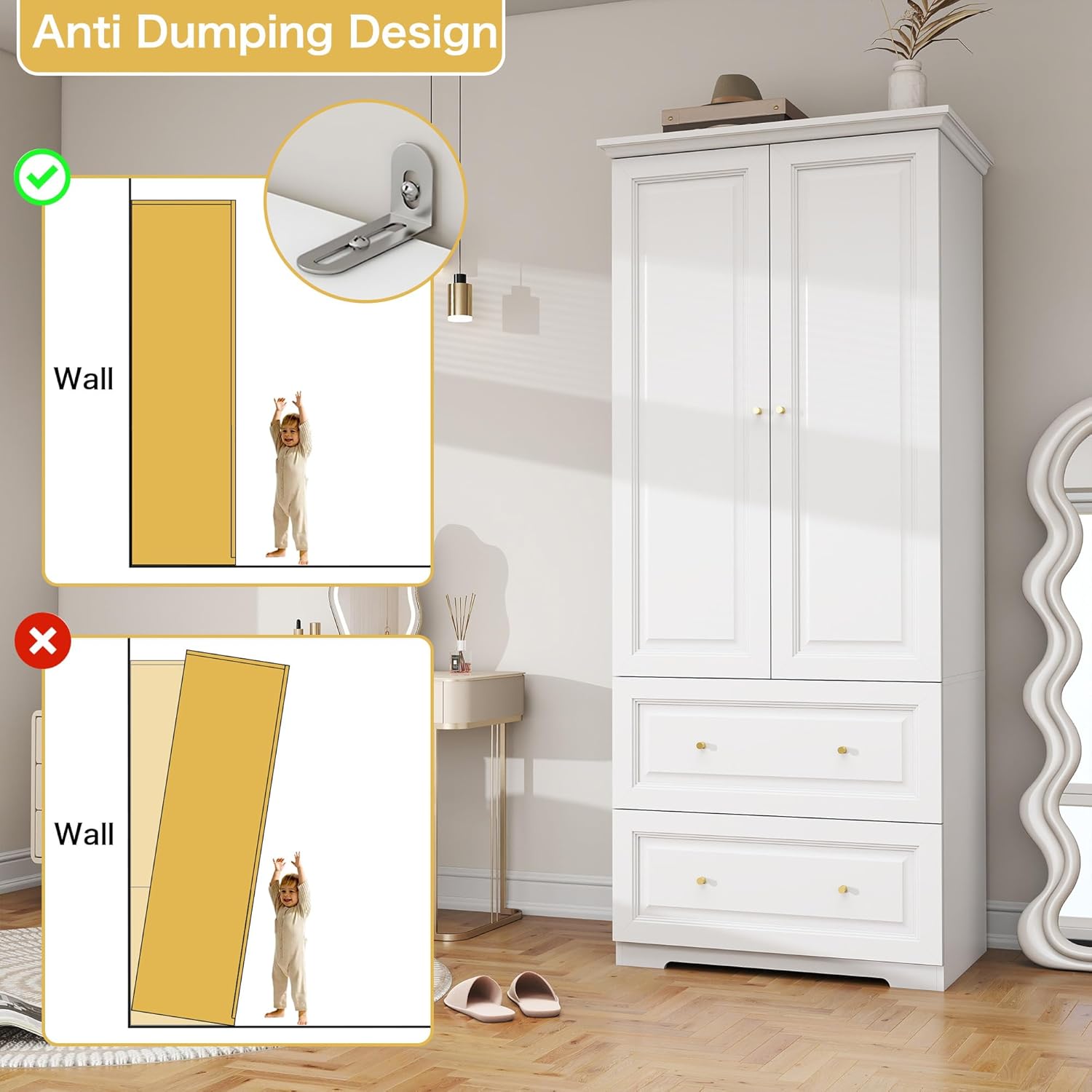 | Set Name | LABROSKIA White Wardrobe with 2 Drawers - 74" |